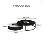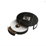 Vasagle's Nesting Coffee Table is a sleek and modern set that will elevate your living room. The set includes a coffee table with drawers to store your items and a round coffee table that nests underneath, perfect for when you need extra space. Made of sturdy sintered stone, this black coffee table set is sure to last for years.